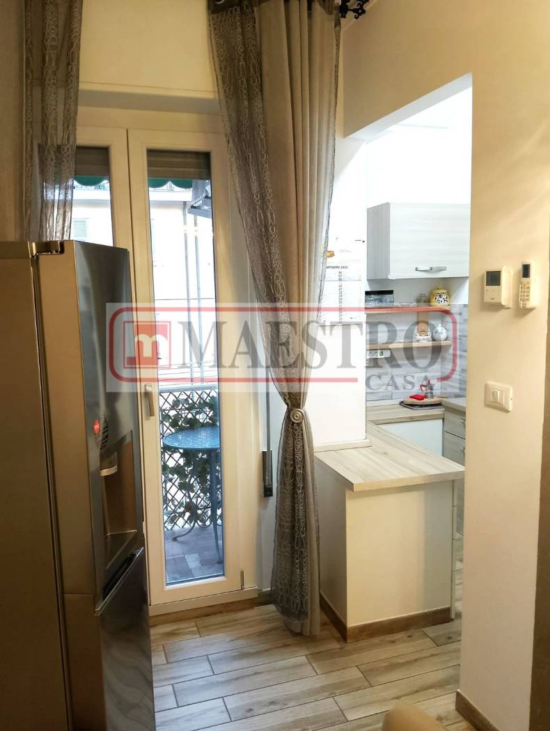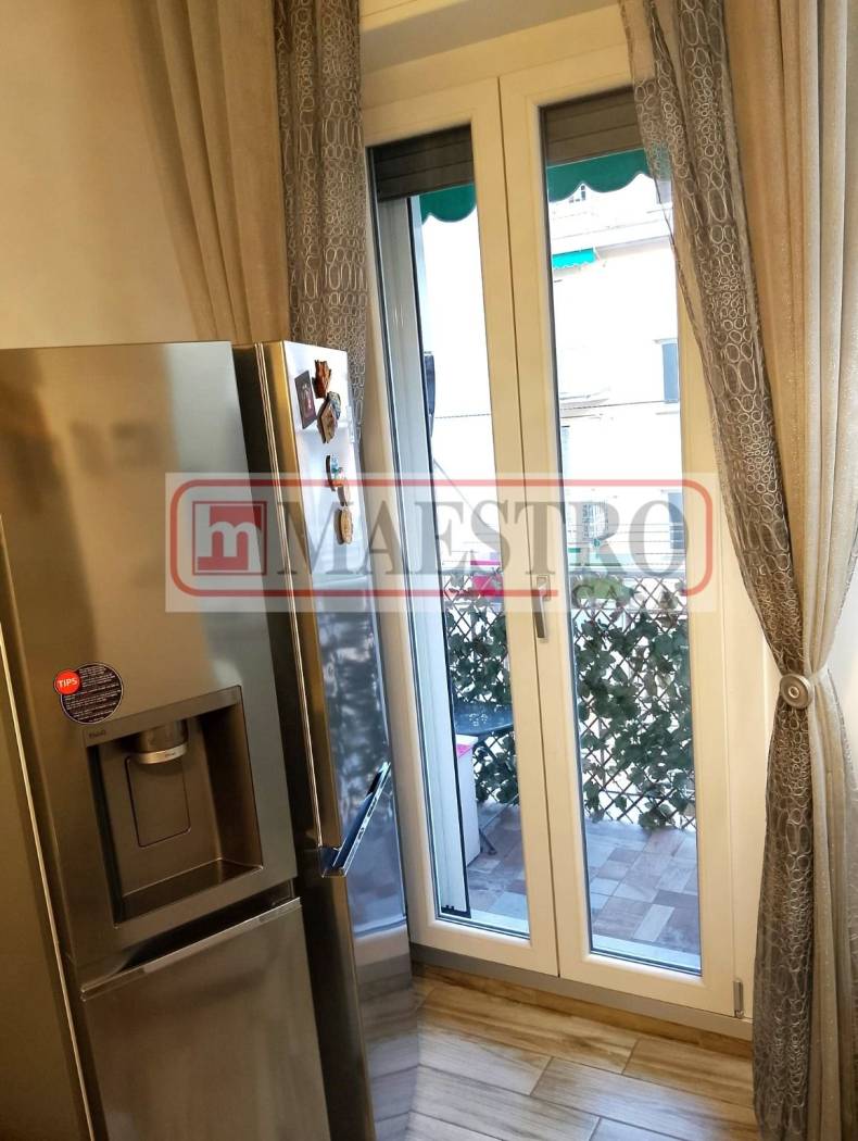 Splendido bilocale ristrutturato e arredato finemente con materiali, finiture e arredo di pregio. 50 mq catastali. Aria condizionata, riscaldamento autonomo. Porta blindata, secondo piano con ascensore di un edificio di 5 piani, piccolo ma confortevole balcone. Dal piccolo ingresso si accede al salone con divano letto e un bellissimo tavolo con piana in marmo, cucinotto completo e balcone che da sul retro con vista aperta e massima tranquillità e silenziosità. Camera da letto matrimoniale con grande armadio. Bagno finestrato con doccia, lavatrice. Frigorifero a due ante con ice-maker. Impianto elettrico generale separato da quello della cucina con interruttori magnetotermici individuali. Infissi in pvc e doppi vetri. Corpi illuminanti e arredamento completo elegante e di valore. Spese condominiali molto contenute in circa 45 euro al mese. Rapallo, meta turistica internazionale, al centro del Golfo del Tigullio e di Portofino, facilmente raggiungibile dal casello autostradale della autostrada A12, comodo per gli aeroporti internazionali di Pisa, Genova, Nizza, Milano Linate Malpensa e Bergamo. Le informazioni e fotografie fornite sono a carattere commerciale e non costituiscono elemento contrattuale.